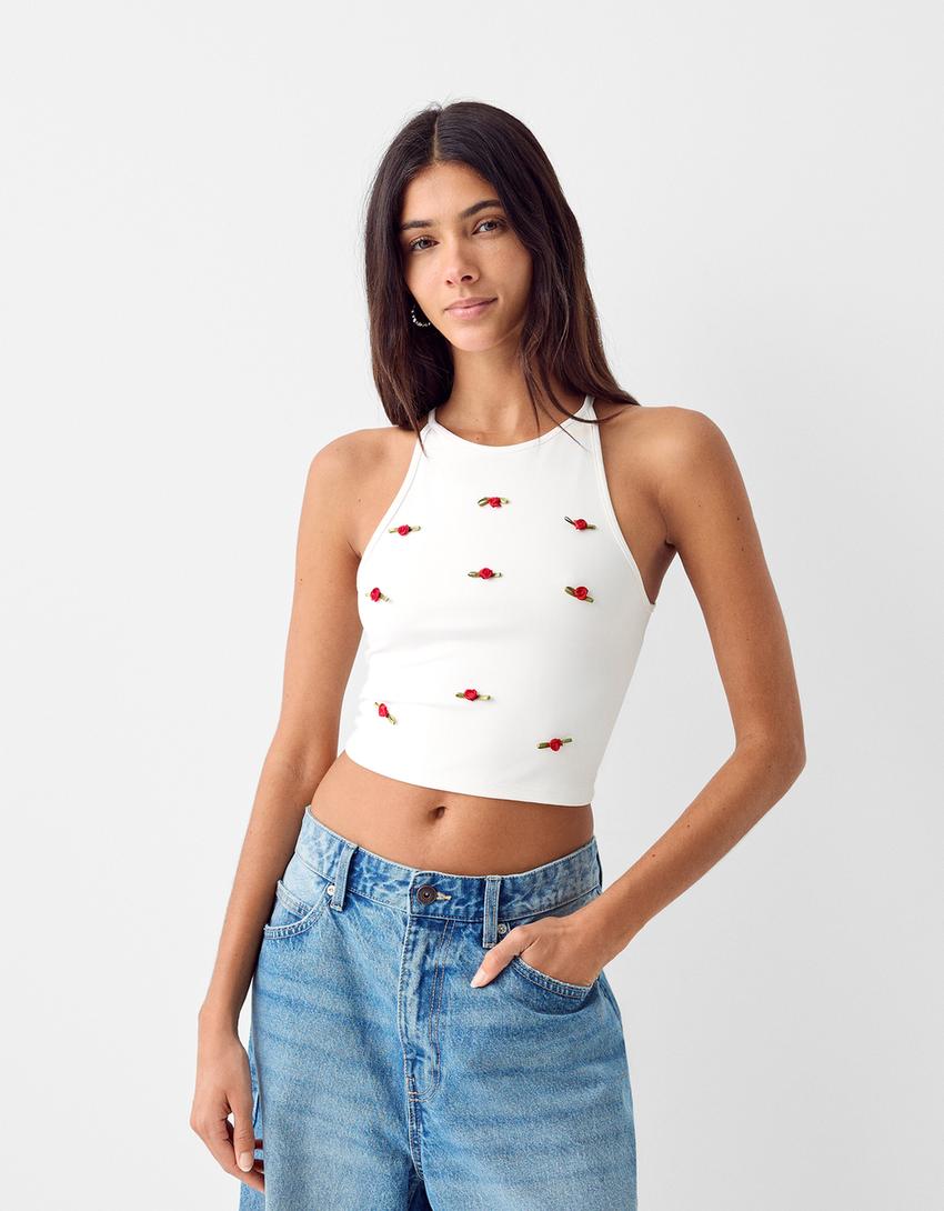 توب بياقة هالتر وطبعة زهور