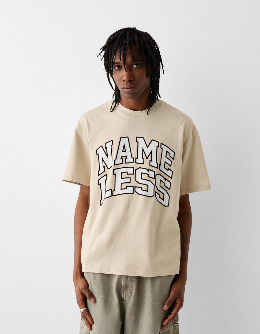 تيشرت بقصة مربعة وأكمام قصيرة وطبعة