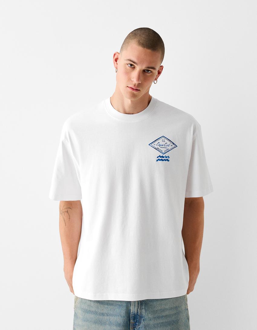 تيشرت بقصة مربعة وأكمام قصيرة وطبعة