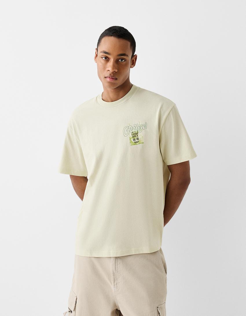 تيشرت بقصّة مربعة وأكمام قصيرة وطبعة