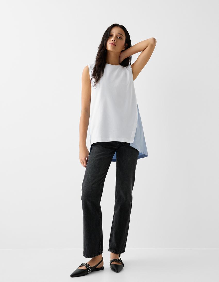 تيشرت فضفاض بدون أكمام من نسيج متباين