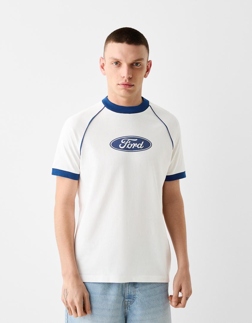 تيشرت قصير بقصة مربعة وأكمام رغلان وطبعة فورد