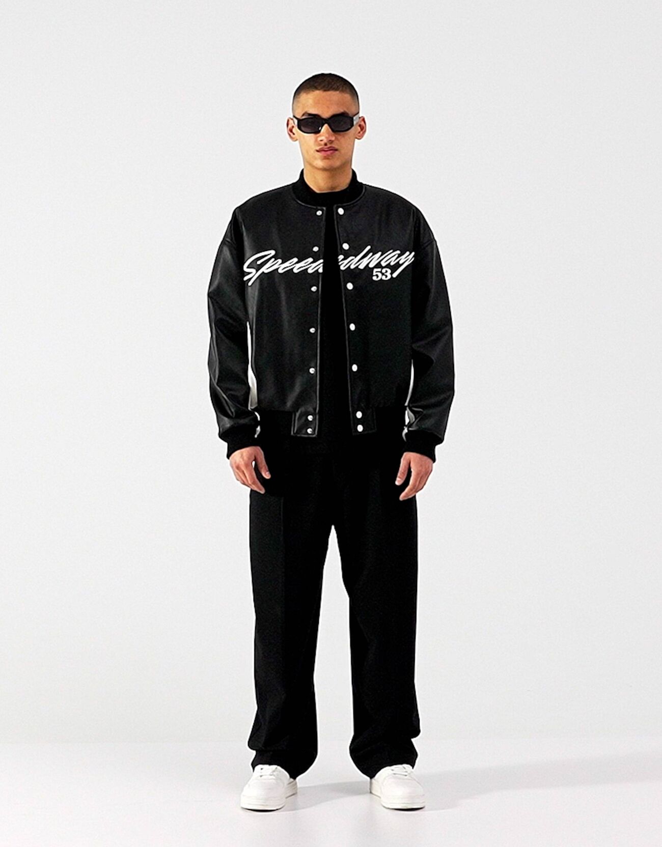 جاكيت بيسبول جلد صناعي مطرز