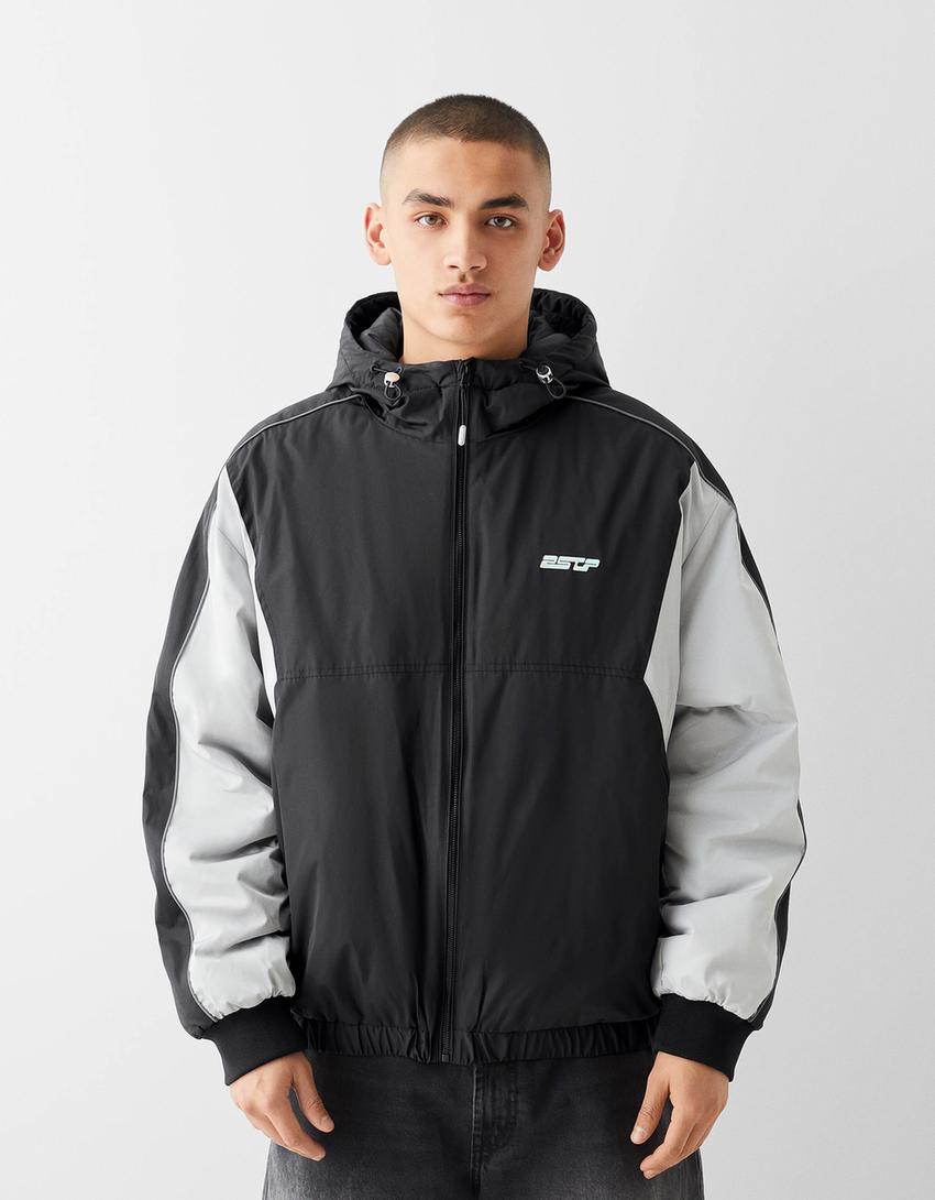 جاكيت تقني بكتل لونية وغطاء رأس