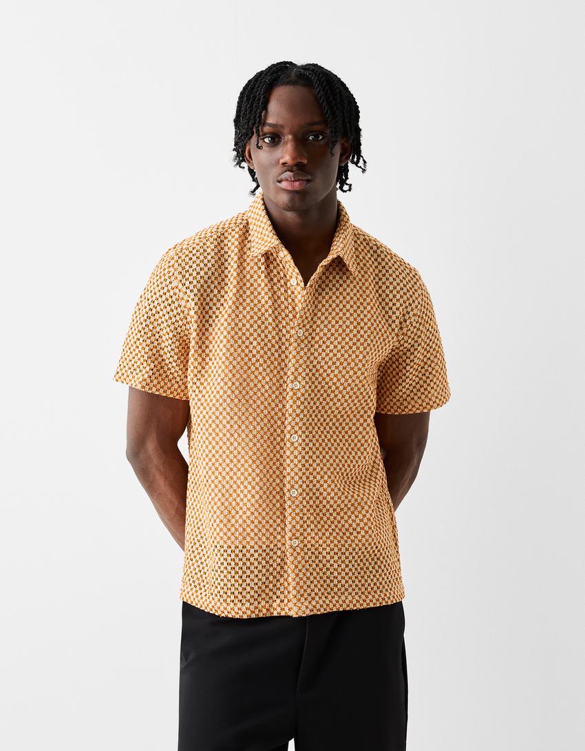 قميص ريفي بأكمام قصيرة وحياكة مفتوحة