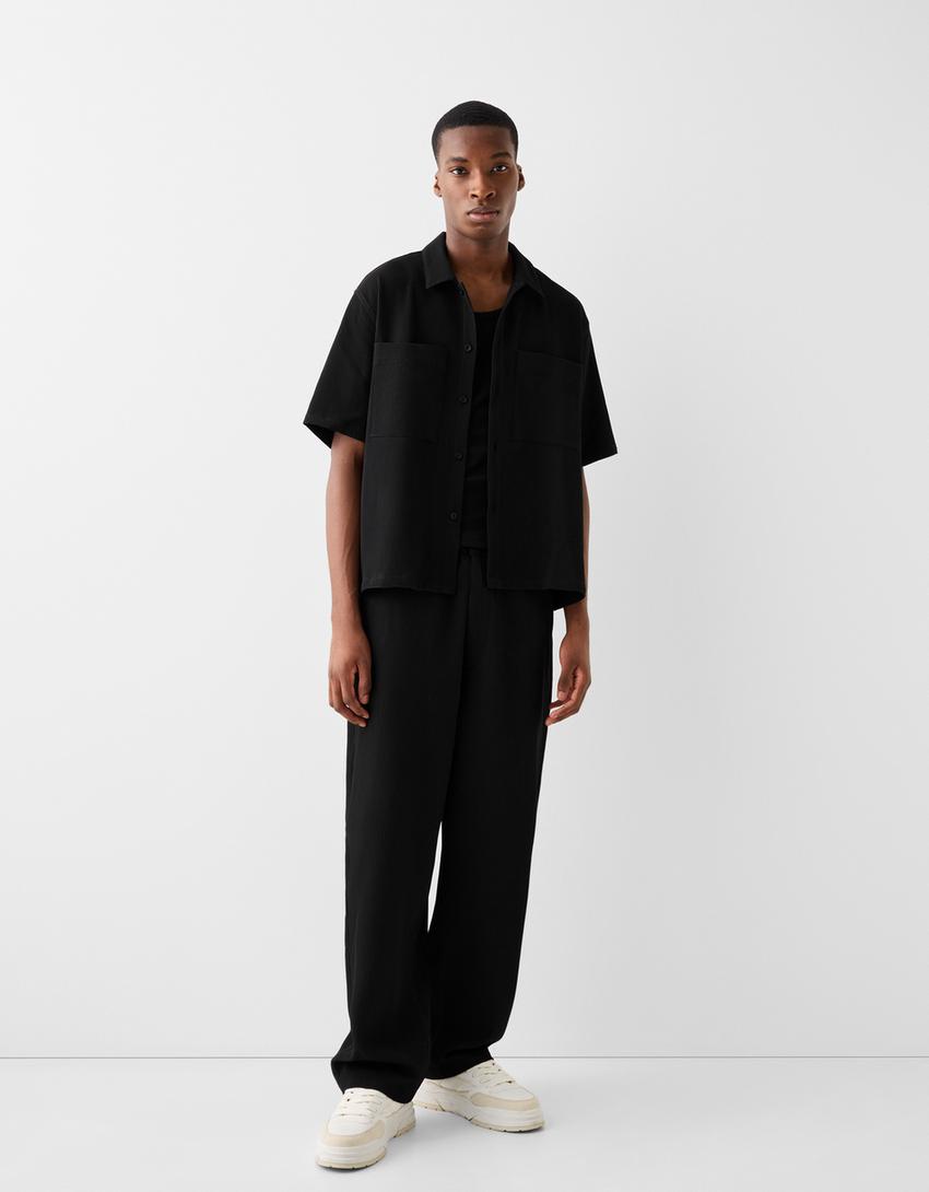 بنطلون بثنيات وساق عريضة