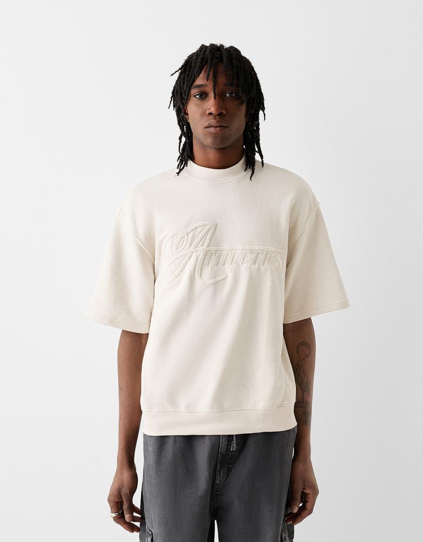 تيشرت قطيفة بأكمام قصيرة وطبعة