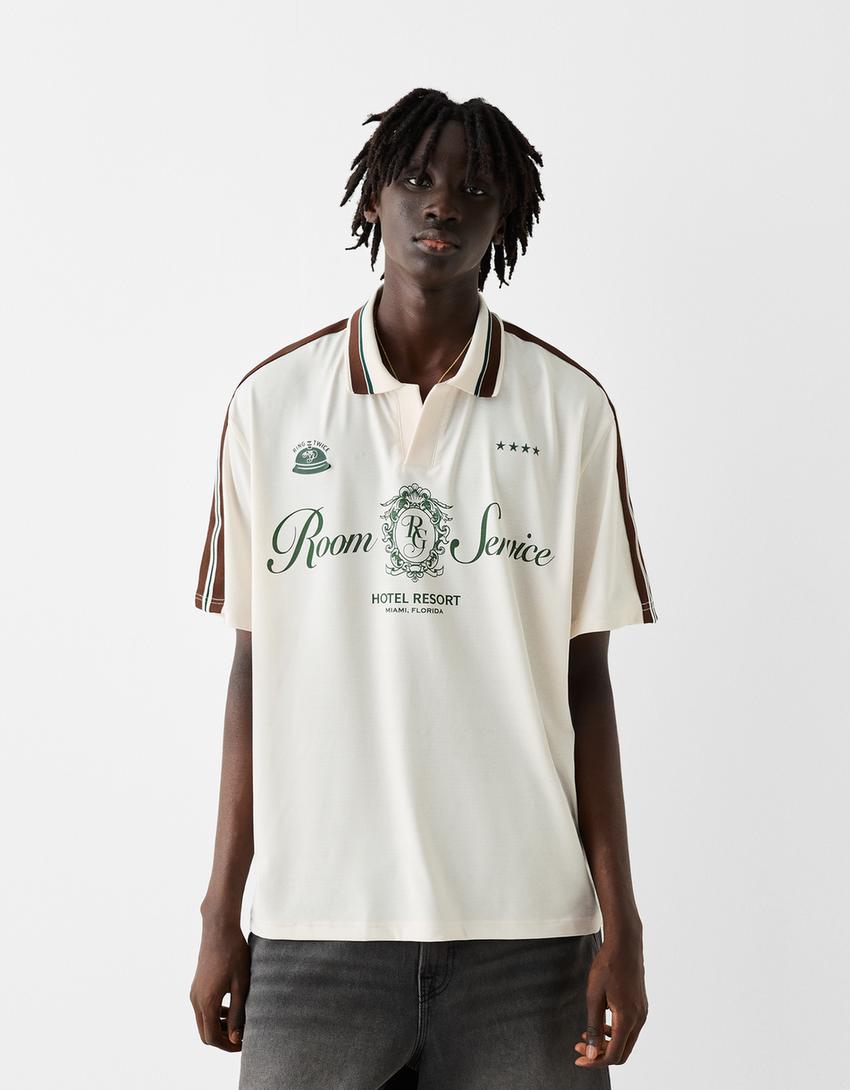 قميص بولو رياضي من نسيج شبكي بطبعة وأكمام قصيرة