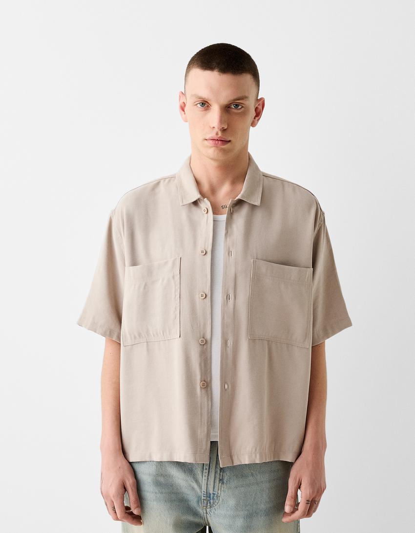 قميص رسمي بقصّة مربعة وأكمام قصيرة
