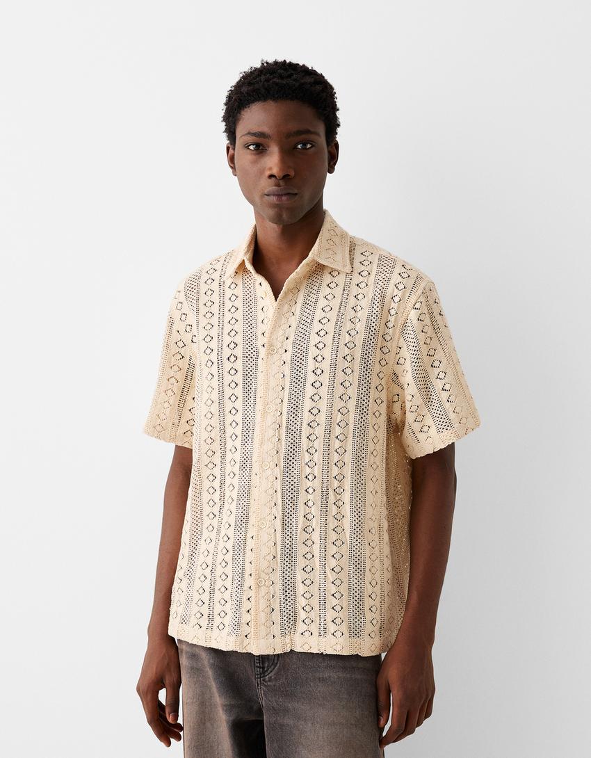 قميص كروشيه بأكمام قصيرة