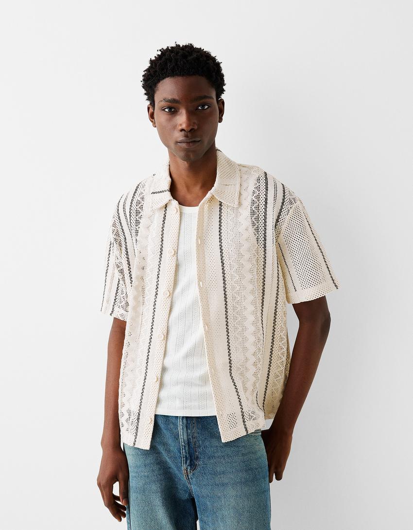 قميص مموج بملمس بارز وخطوط