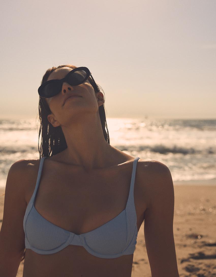 قطعة بكيني علوية مضلعة بسلك داخلي