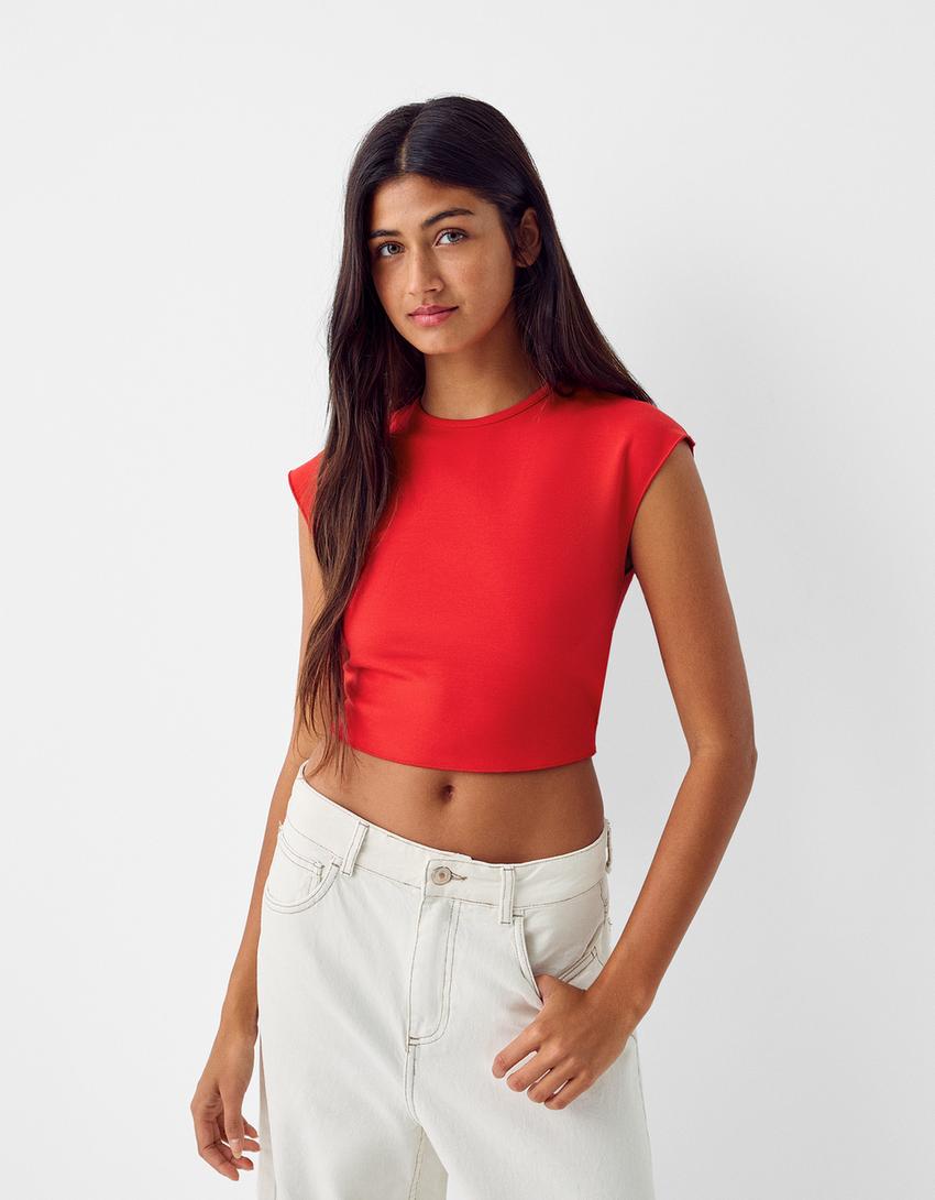 تيشرت بأكمام قصيرة وأحجار تزيينية