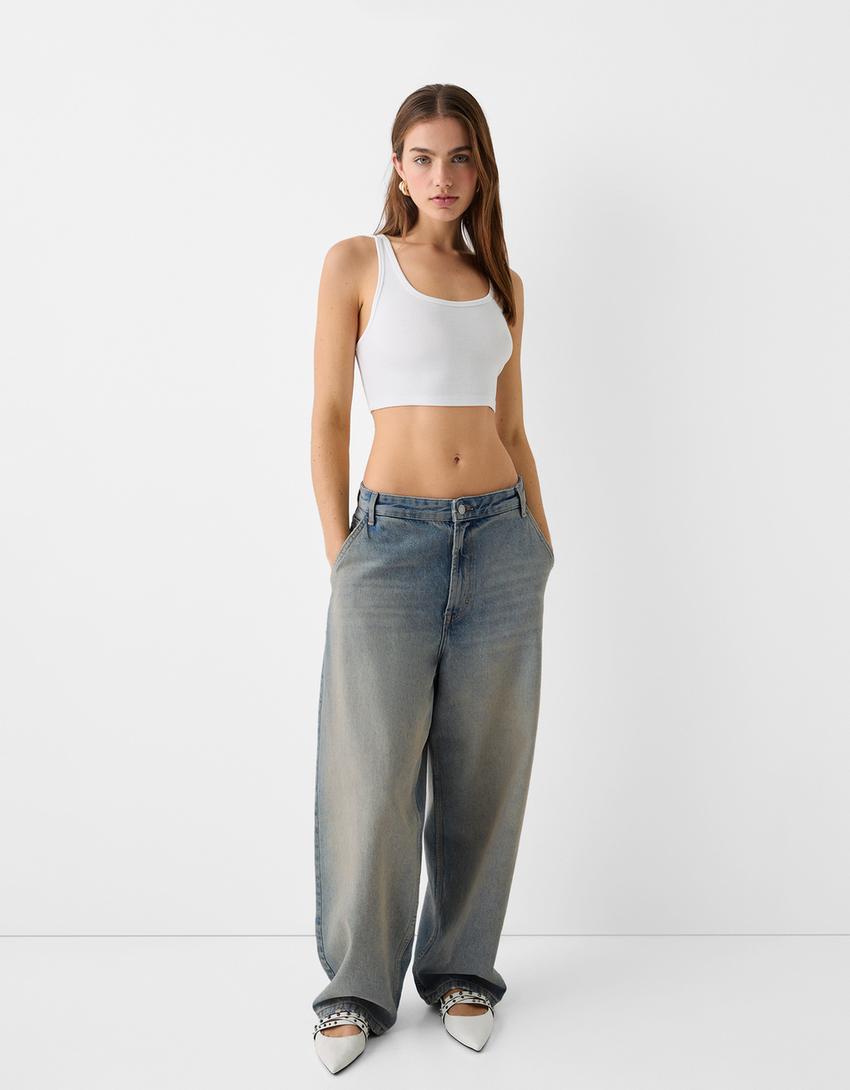 بنطال جينز تزلج بتأثير باهت