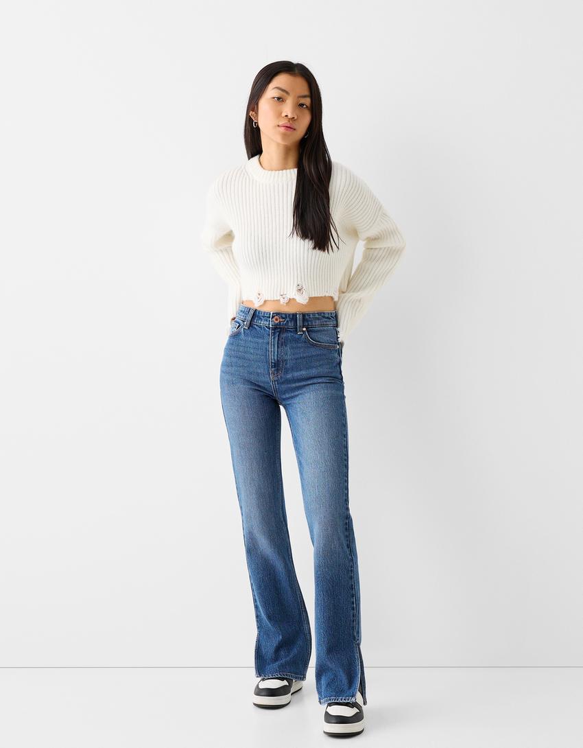 جينز جرسي مريح بفتحة في الطرف السفلي