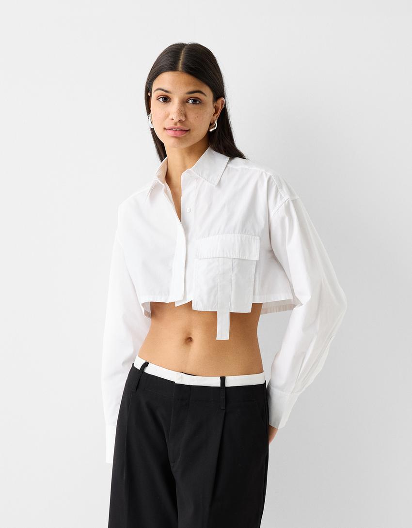 قميص بوبلين قصير بأكمام طويلة وحمالات