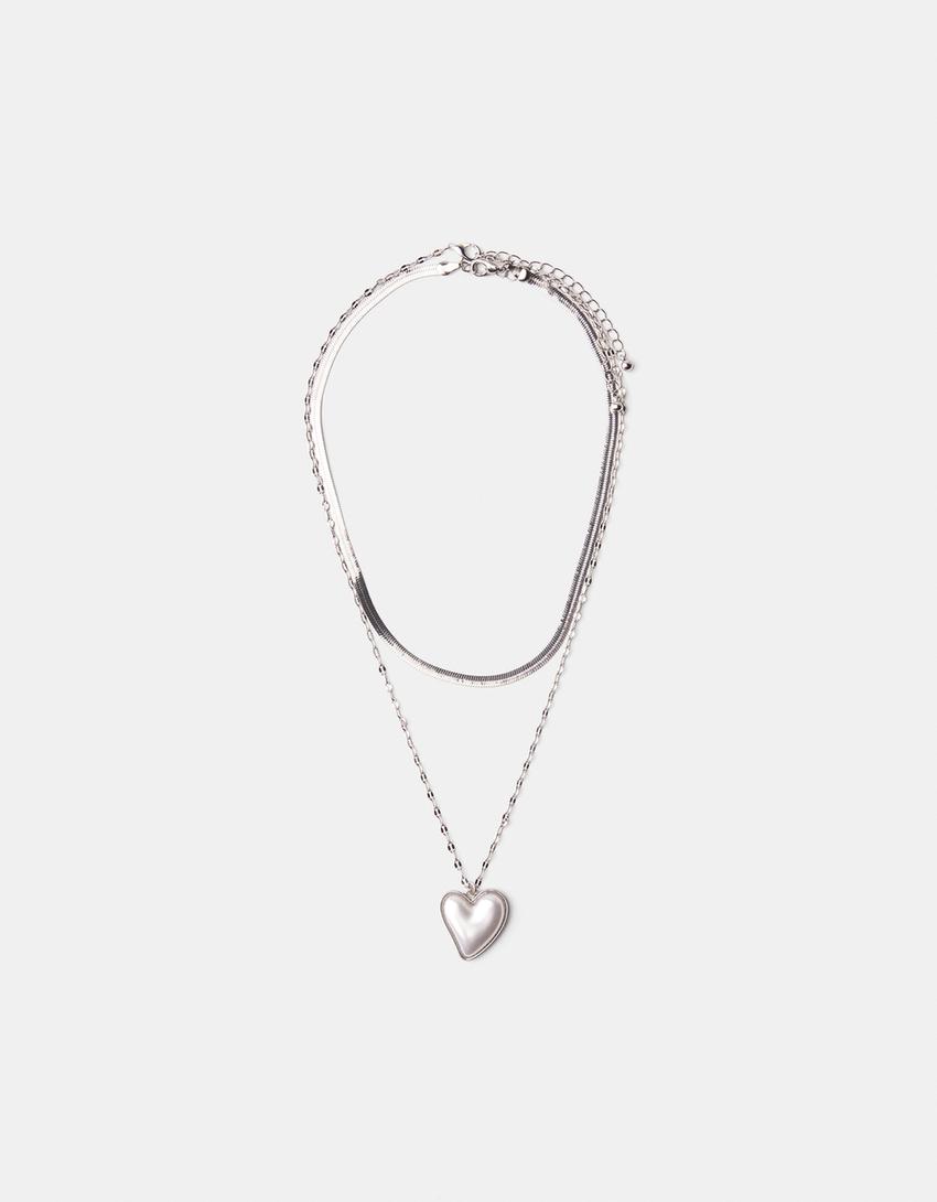طقم من 2 عقود من اللؤلؤ الصناعي على شكل قلب وثعبان