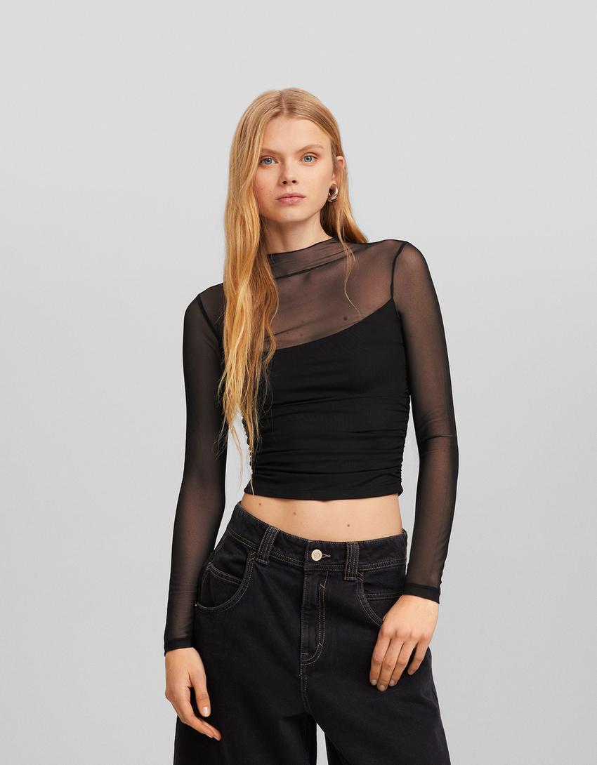 تيشرت تول بزمة وأكمام طويلة