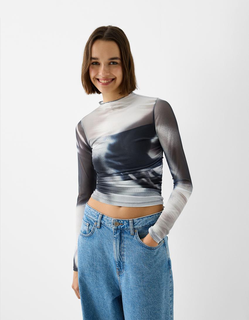 تيشرت تول بزمة وأكمام طويلة