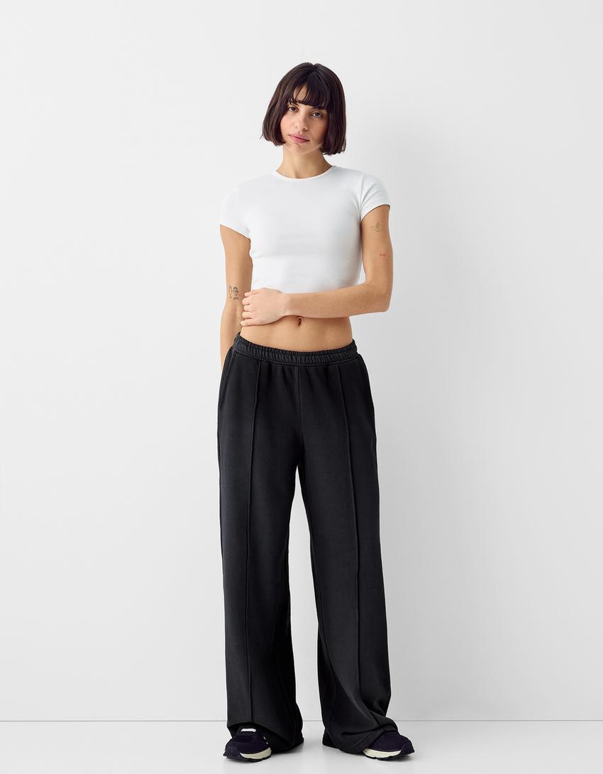 بنطال ناعم واسع الساقين بتأثير باهت