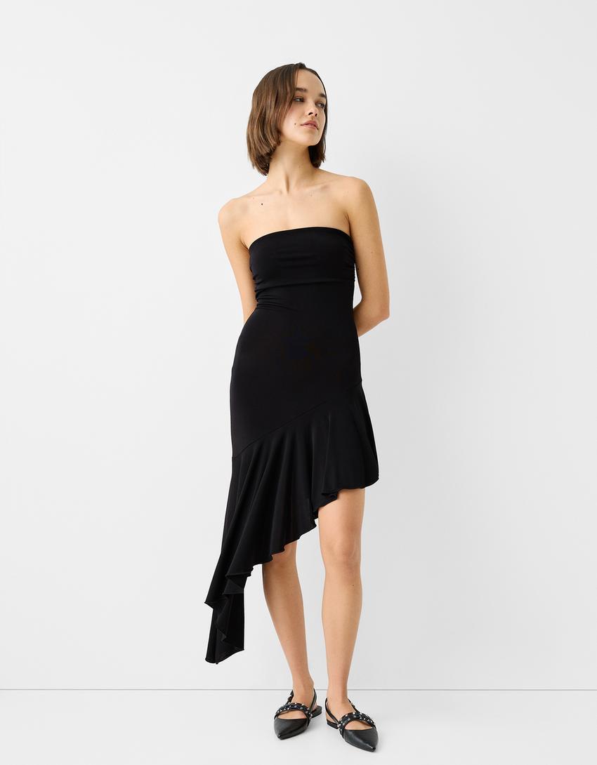 فستان متوسط الطول غير متماثل بأكتاف مكشوفة
