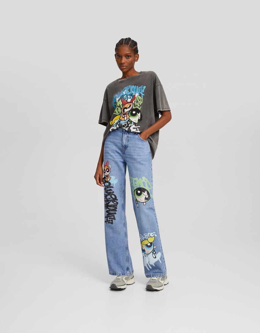 بنطال فتيات القوة نمط التسعينيات واسع الساقين