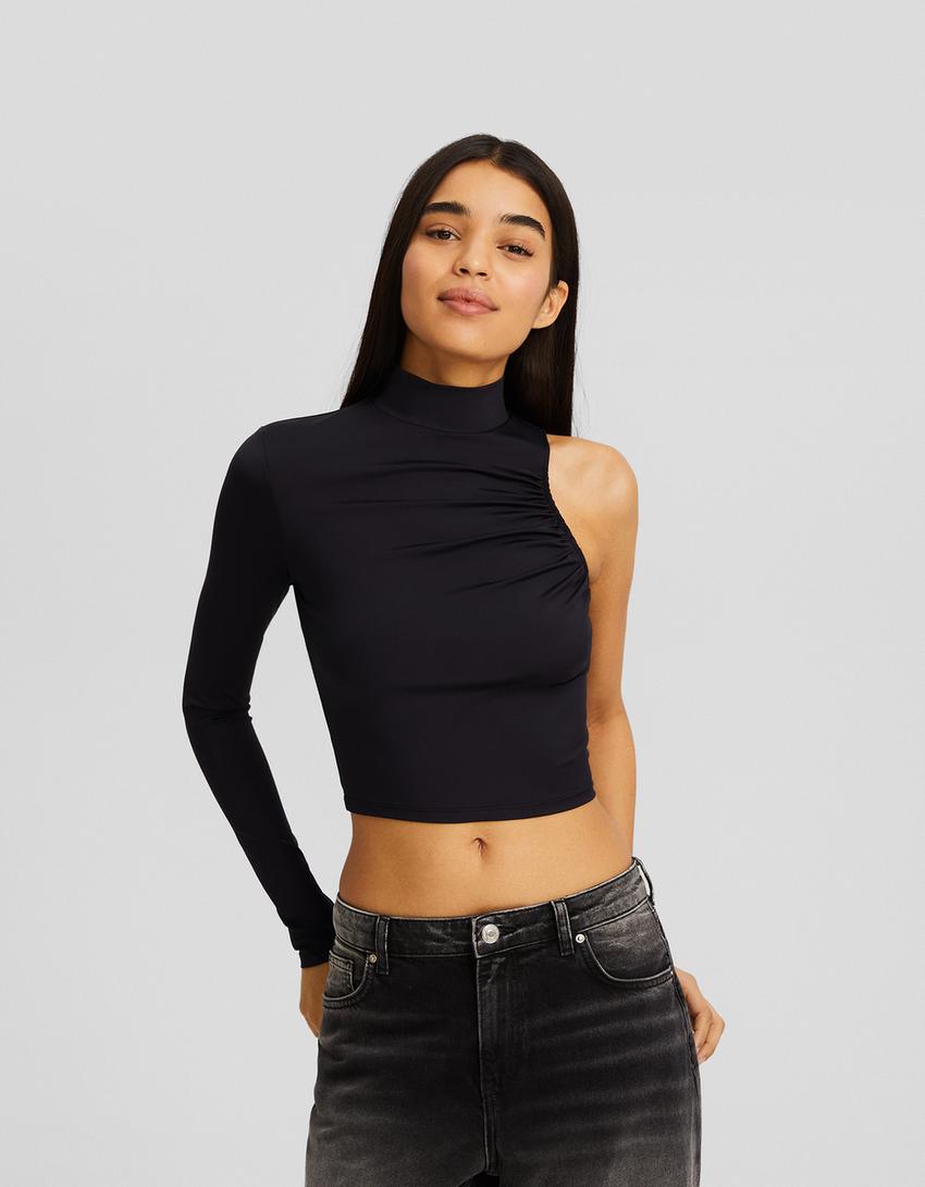 تيشرت بزمة غير متماثل وبأكمام طويلة