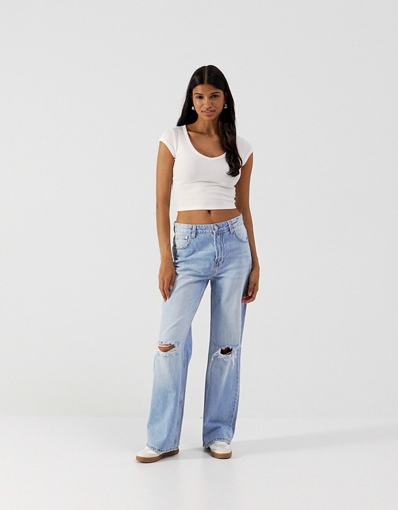 بنطال جينز نمط التسعينيات ممزق واسع الساقين