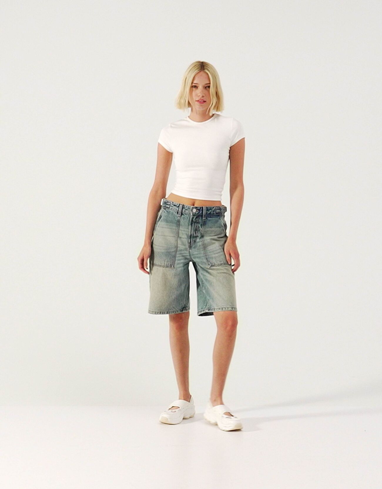 شورت برمودا دنيم بقصة بالون وساق عريضة