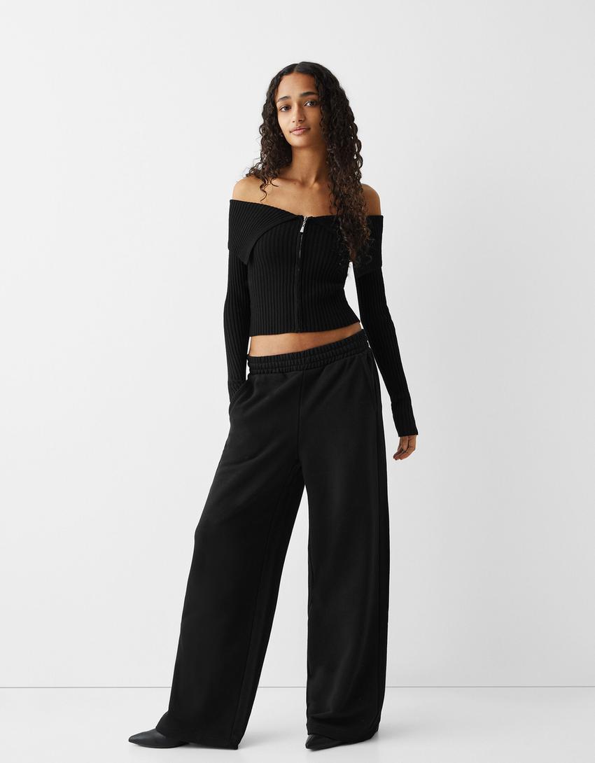 بنطلون من نسيج البلش بساق عريضة