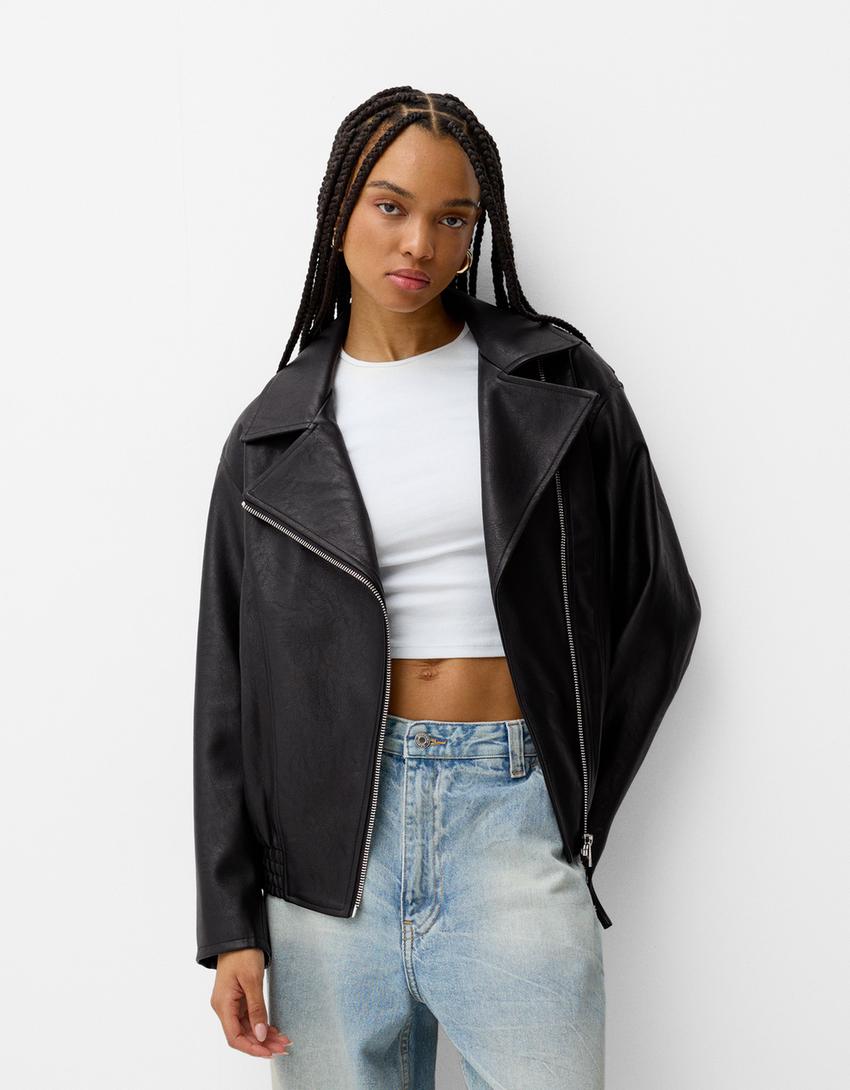 جاكيت جلد صناعي بشعار بارز
