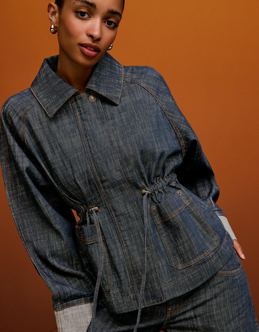 جاكيت دينيم بقياس كبير بارز الملمس