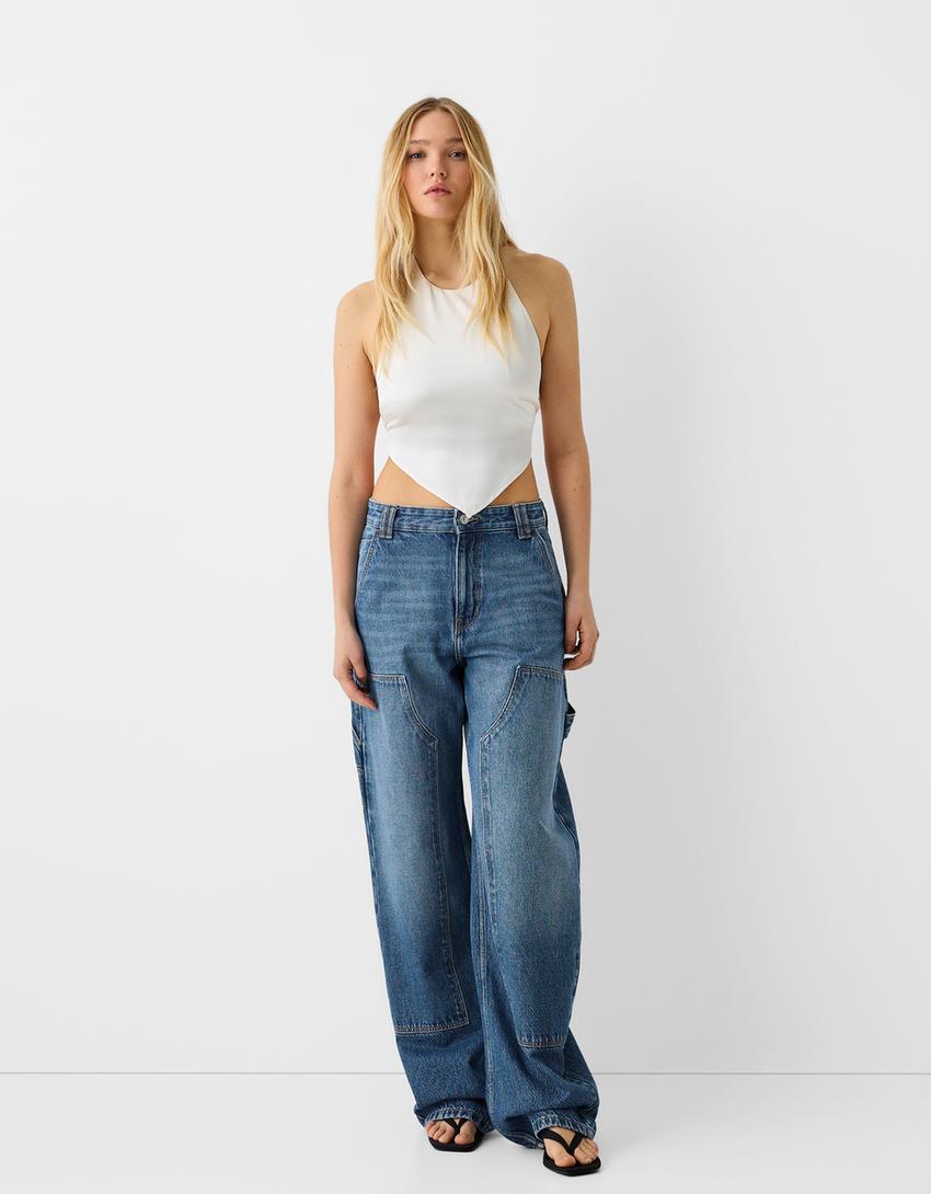 بنطال جينز عمالي ريفي واسع بقصّة بالون