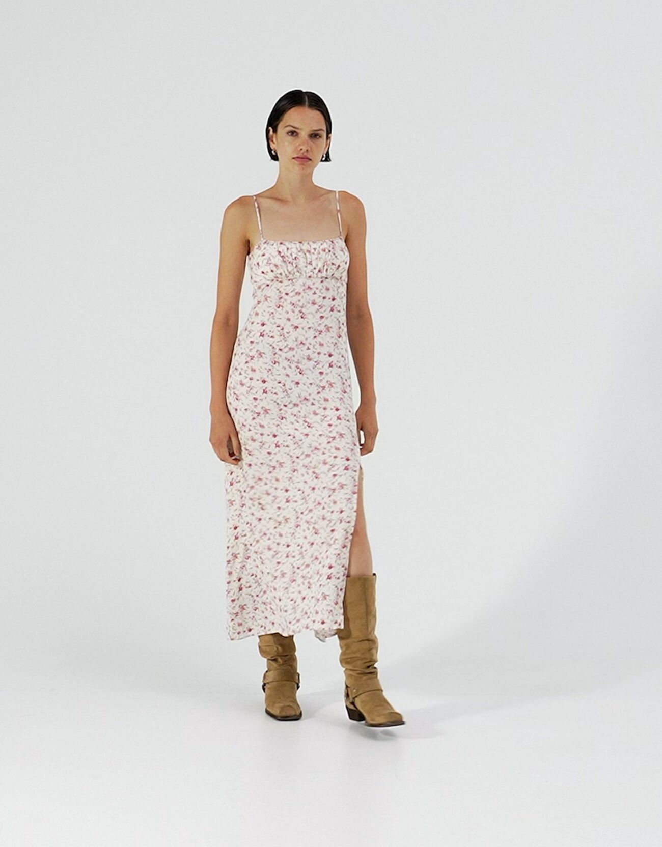 فستان كريب مطبوع متوسط الطول