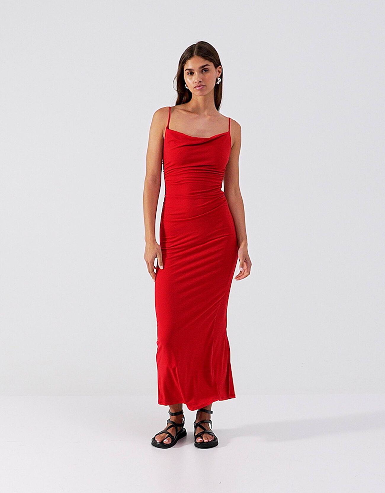 فستان طويل ملتف بحمالات