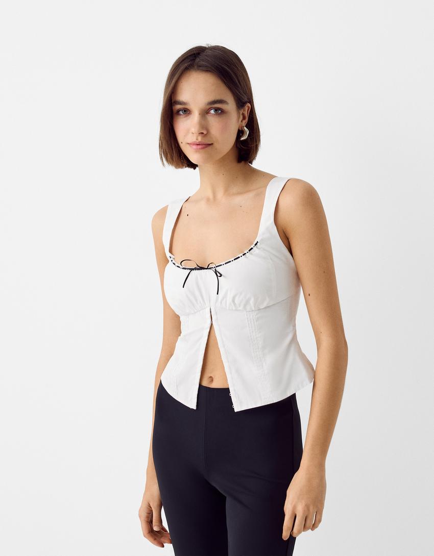 توب بوبلين بحمالات وتفصيل حافة دانتيل
