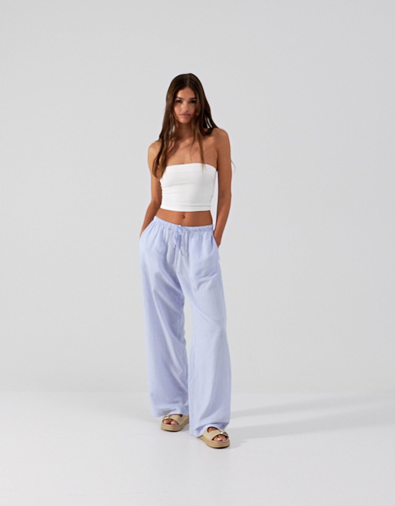 بنطال مخطط بقصّة مستقيمة وشريط خصر مرن