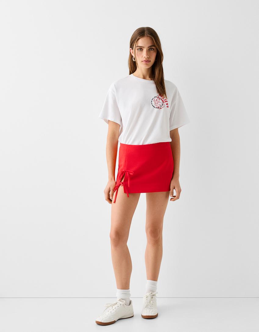 تنورة قصيرة بكتان وربطات