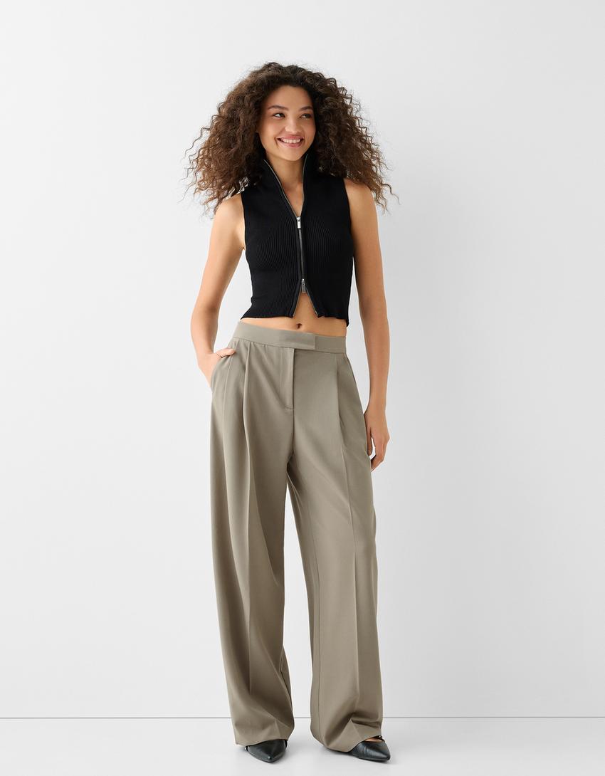 بنطال بقصّة مريحة وثنيات مزدوجة