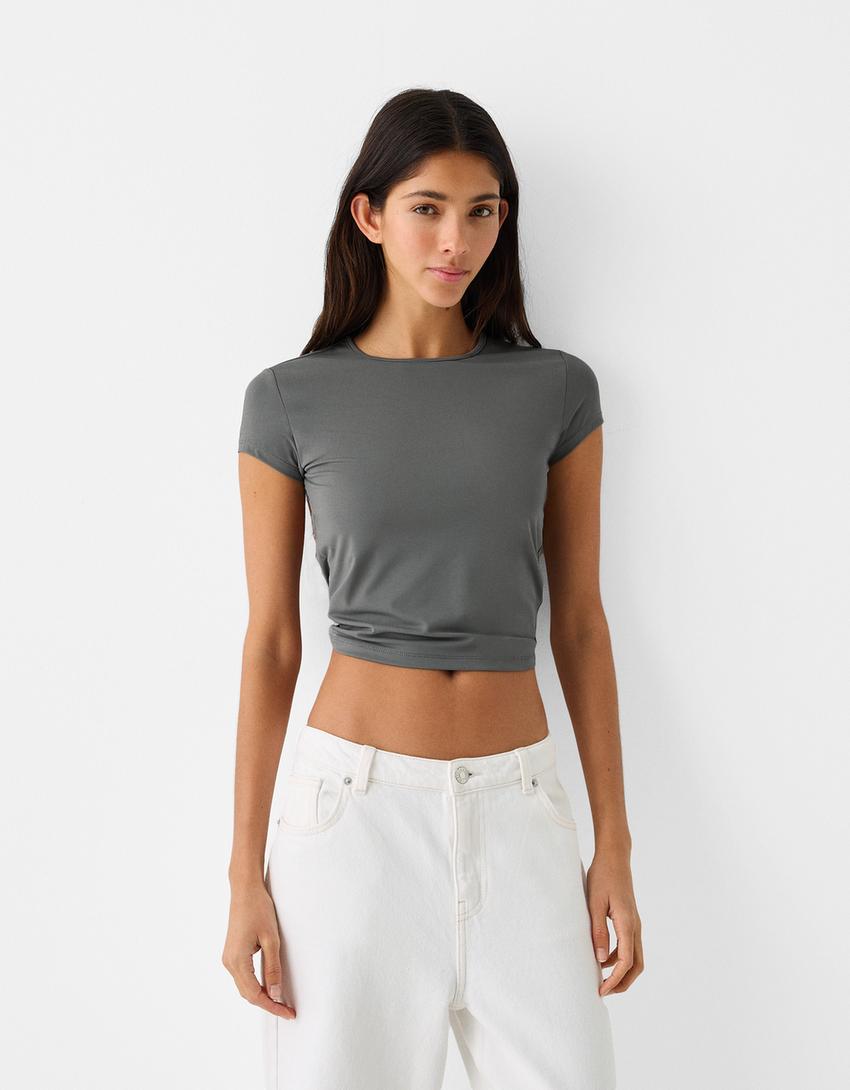 تيشرت بأكمام قصيرة وفتحة خلفية