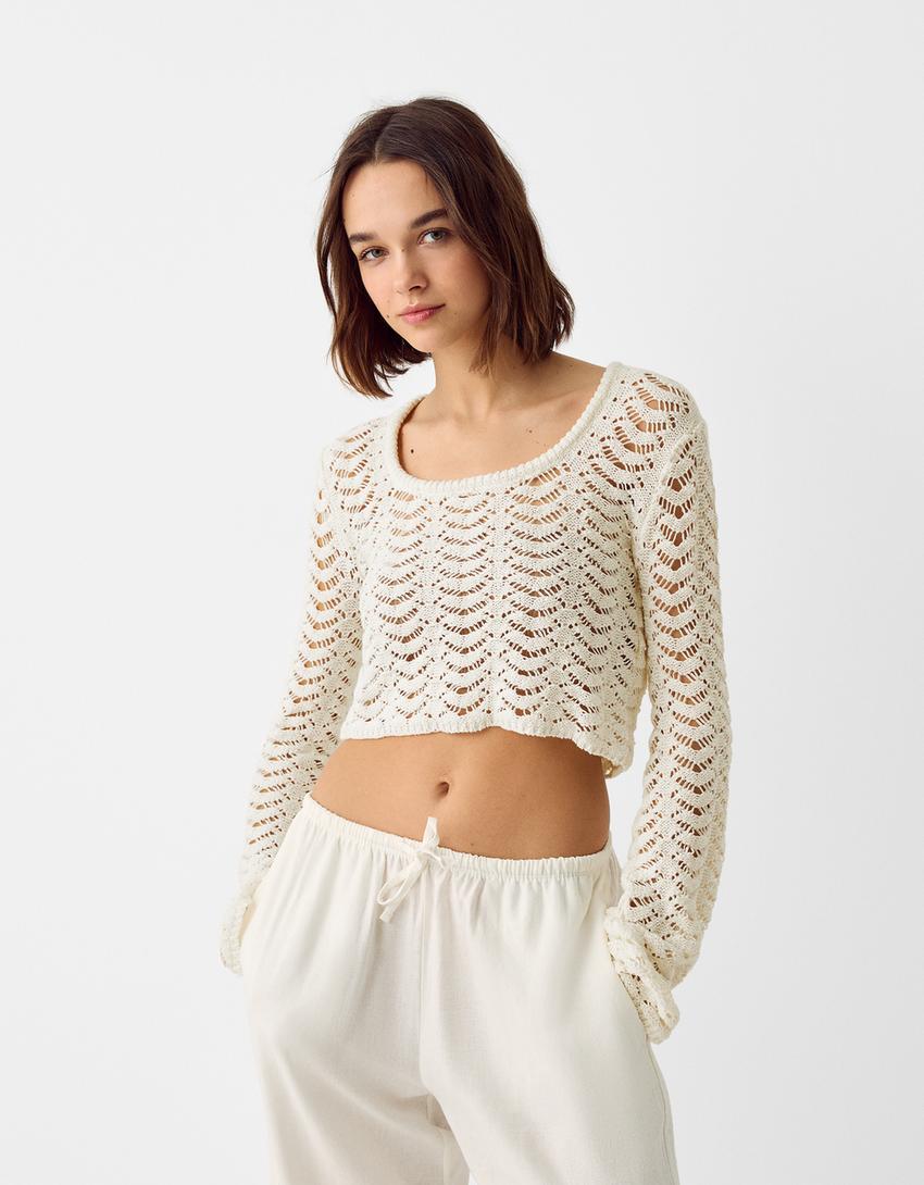 سويتر برقبة واسعة وغرزة مخرمة