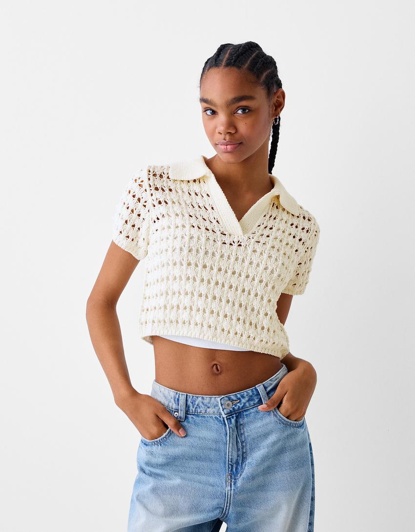 قميص ريفي بغرزة مخرمة وأكمام قصيرة