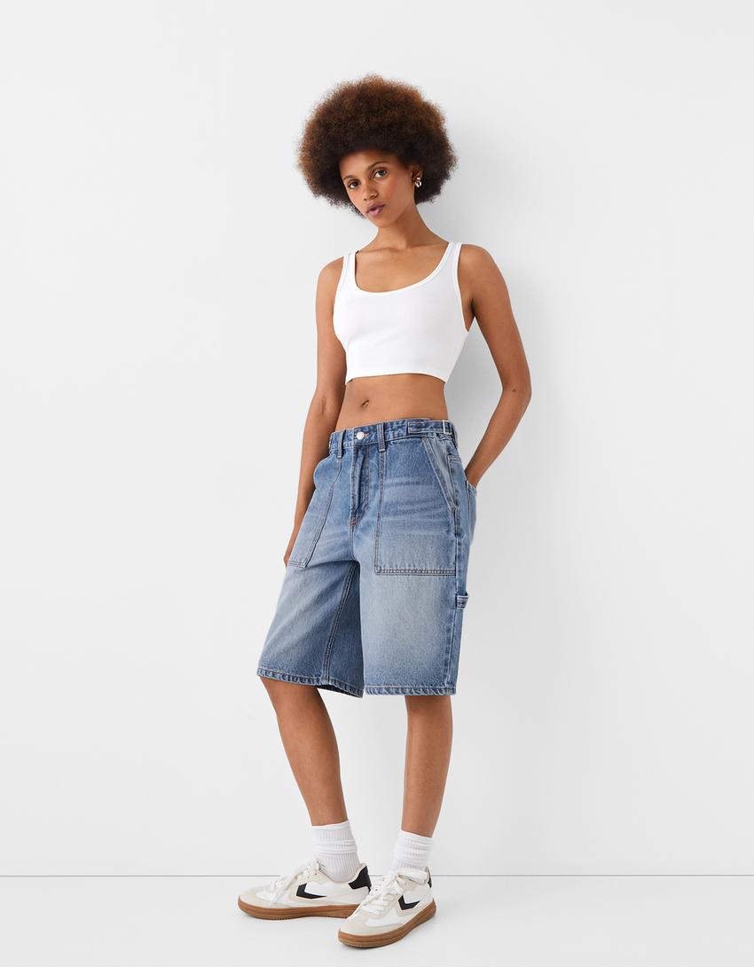 شورت برمودا دنيم بقصة بالون وساق عريضة