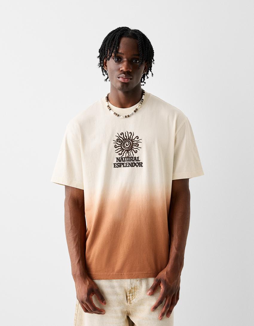 Избеляла квадратна фланелка с къс ръкав и щампа