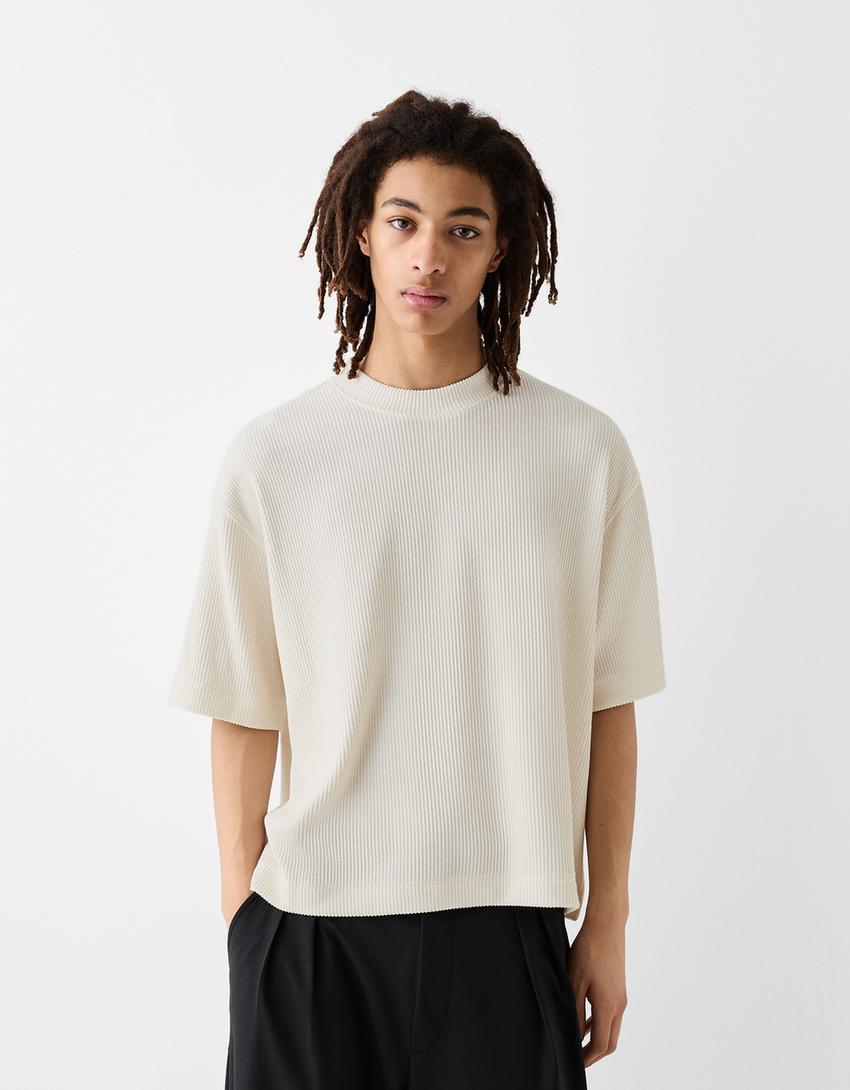Структурирана фланелка с къс ръкав