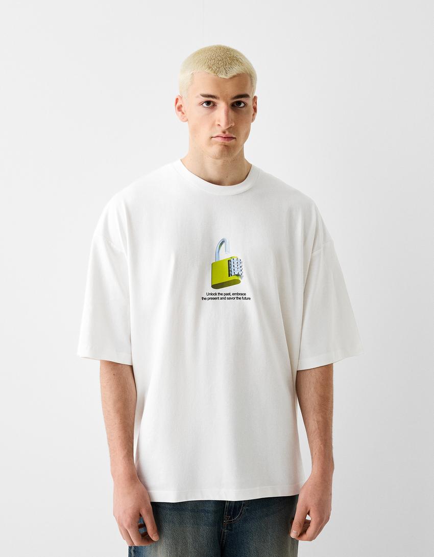 Щампована фланелка оувърсайз с къс ръкав
