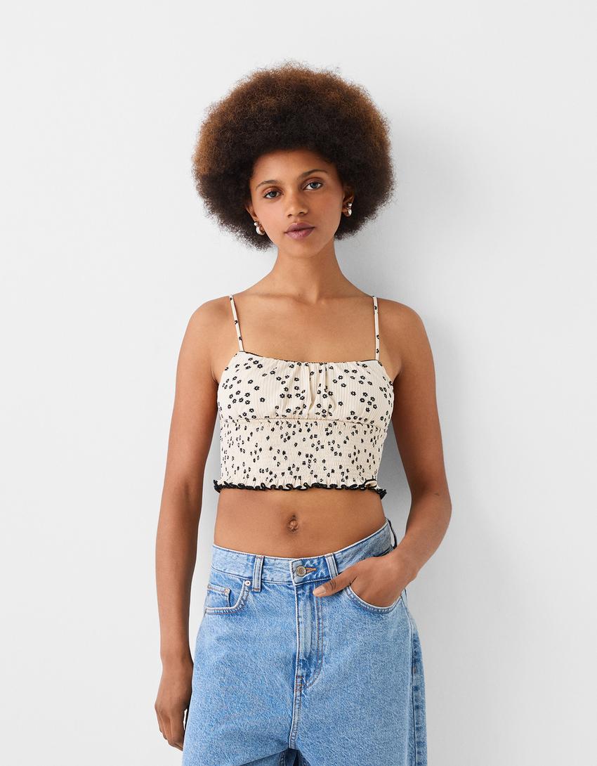 Top marguerites smocks à fil élastique