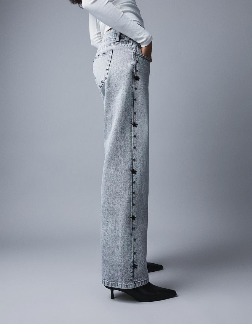 Baggy Jeans mit tiefem Bund und Sternnieten