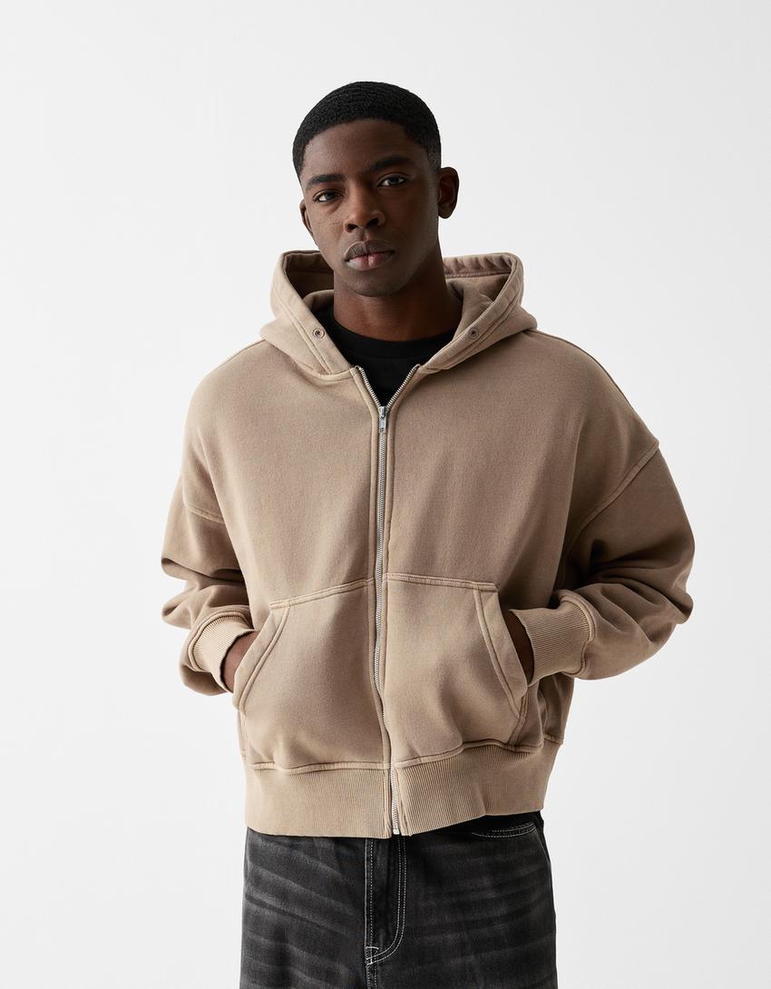 Sudadera cremallera capucha cropped efecto lavado