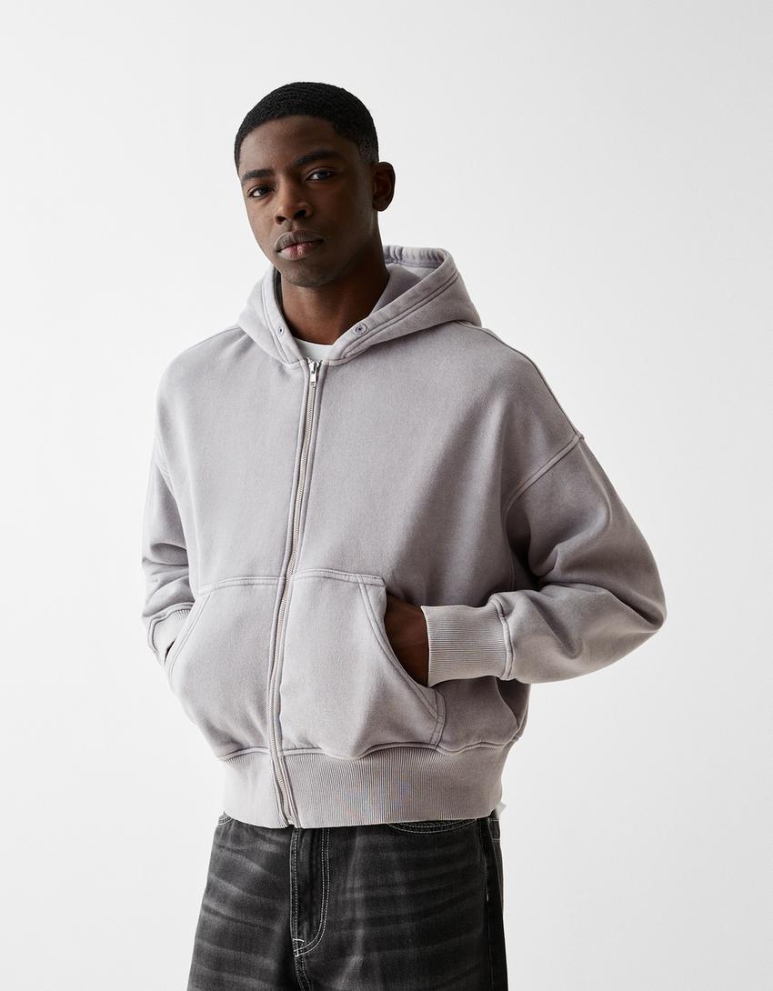 Sudadera cremallera capucha cropped efecto lavado